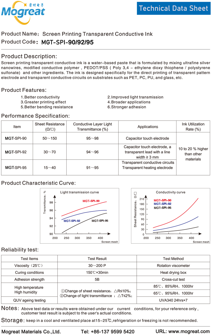 • Screen Printing Transparent Conductive Ink(MGT-SPI-90/92/95)