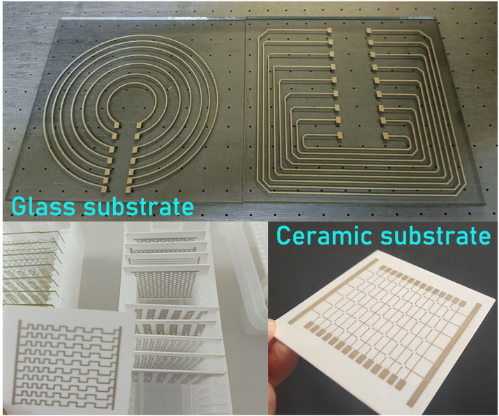 High temperature curing inkjet printing nanosilver ink (MGT-IJP-INK3050HT) is a new type of high temperature sintered electronic material for digital printing deposition conductive circuit technology. The ink can realize the digital, non-contact, high-precision patterning distribution of large-area circuit conductors, and can be applied to various high-temperature substrates such as glass, ceramics, quartz, silicon wafers, etc. It can be sintered at a high temperature of about 600 degrees, and the printing circuit can be welded at high temperature.