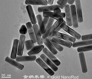 通过30万倍以上电子显微镜观察,纳米金呈现线形、星形、方形、球形、棒状等各种不同和形状,其中棒状在所有形状中无论品质还是功能都是最好的。纳米颗粒生成后,怎么防止它不凝结,以保持它的纳米特性,这是一个长期困扰科学界的难题。两个纳米金如果遇到一起,会逐渐粘合长成一个,所以每个纳米金表面会用PEGCTAB进行修饰,并以溶液方式保存。随着纳米金的形状及尺寸的不同,溶液会呈现不同的颜色,纯净的纳米金溶液可以直接饮用或者注射到人体内。