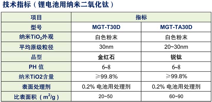 纳米二氧化钛( CAS# :13463-67-7 )是一种优质的锂电池原料,由于纳米二氧化钛具有嵌锂容量大,能耗低,循环稳定性好,比容量大,无副反应,环保等特性,作为正极材料具有明显优点。此外,纳米二氧化钛具有光稳定等性能,已成为研究生产光电太阳能转换电池普遍使用的材料。