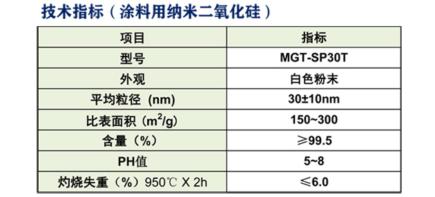纳米二氧化硅( MGT-SP30T)在涂料中的应用特性: