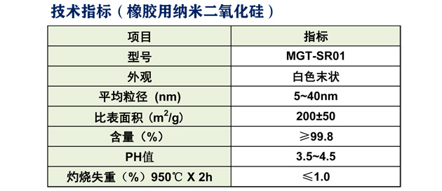 纳米二氧化硅 (MGT-SR01) 在橡胶中的应用特性: