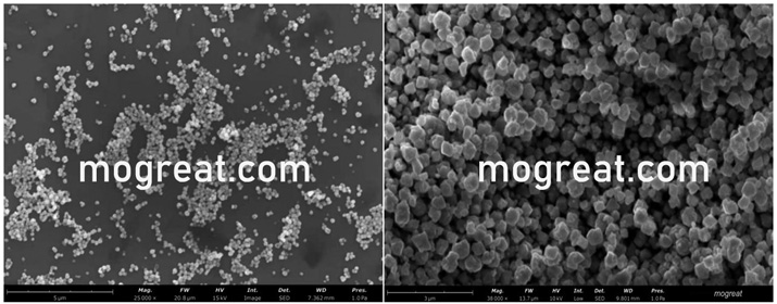 纳米氧化亚铜粉为铜的一价氧化物,常温下为粉末状固体,其颜色因为纳米粒径尺寸呈现黄色或者橘棕色从而与200目 ( 75μm)氧化亚铜粉的玫瑰红区别很大。 我司 纳米氧化亚铜粉 (型号:MGT-CPSO-P200 & MGT-CPSO-P400 ) 纯度高、粒径分布均匀、形貌为球型、为软团聚体,容易分散在各种材料里。由于纳米材料的高比表面积效应,所以纳米氧化亚铜具有超强的铜离子释放能力,具有非常好的抗菌防霉特性,抑菌防污能力比普通的200目(75μm)氧化亚铜粉高很多倍,因此被广泛应用于轮船防污漆和化纤、涂料、塑料、橡胶、陶瓷的抗菌剂以及农药。