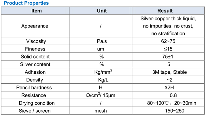 Remarks: silver content, solid content, conductivity and viscosity can be customized according to the actual needs of customers.