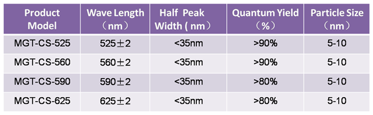 Parameters of CdSe/ZnS oil-soluble & core-shell structure of quantum dots :