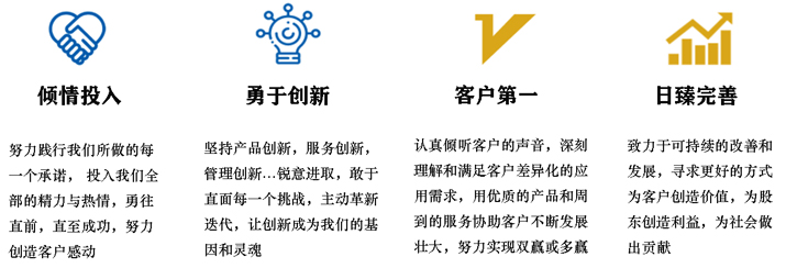 ◆价值观:为客户创造价值,为员工搭建平台,为股东创造利益,为社会做出贡献。