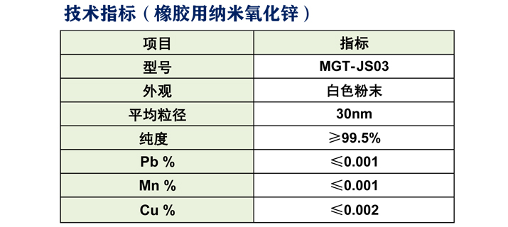 (1)橡胶工业中硫化活性剂,用于汽车轮胎、飞机轮胎、工业电缆行业。 纳米氧化锌用于橡胶中,