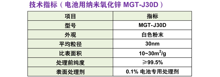 1、纳米氧化锌(MGT- J30D )具有较大的比表面积和多孔洞的特点,有助于吸附更多的染料,应用于染料敏化电池。